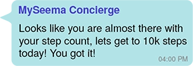 The team knew she enjoyed walking outside but she didn't always have the time. MySeema encouraged her to speak to her manager and see if she would be allowed to go into work one hour later at 10am versus 9am. This helped give her protected time to walk, stretch or exervise without worrying about getting to work on time. Her ultimate goal was to reach 10,000 steps, 5 days a week.